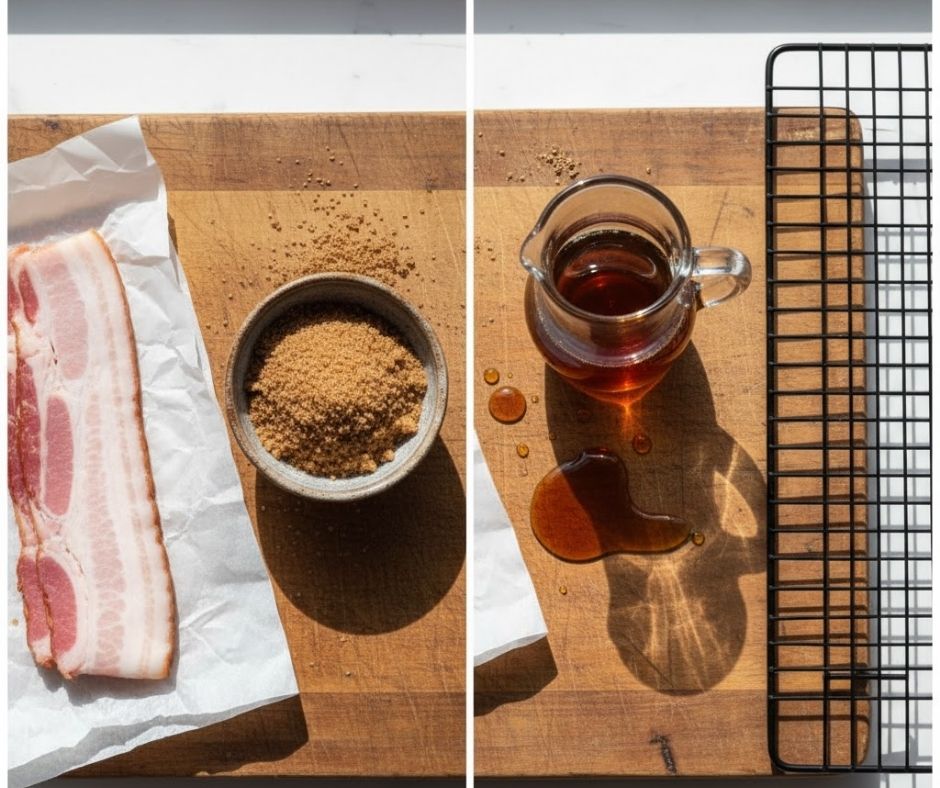 - 1 Tablespoon Maple Syrup (or Water): Just a tiny bit of liquid to help the sugar dissolve and stick to the bacon evenly. Maple syrup adds great flavor!