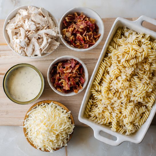Swap the pasta for cubed, peeled potatoes that you par-cook for about 5 minutes (they need a head start!). Add a little sour cream (1/4 cup) to the ranch sauce for extra potato richness. Layer the potato, chicken, bacon, and cheese, then bake. This is pure, creamy comfort.