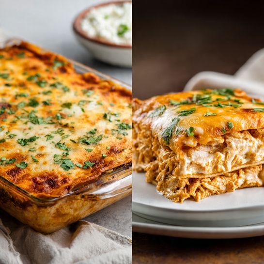 Easy peasy. Swap the corn tortillas for low-carb tortillas or use thick slices of zucchini (blanched or roasted slightly to remove moisture) as your layer base. You still get all the creamy filling, cheese, and sauce flavor without the carb count. You’re welcome.