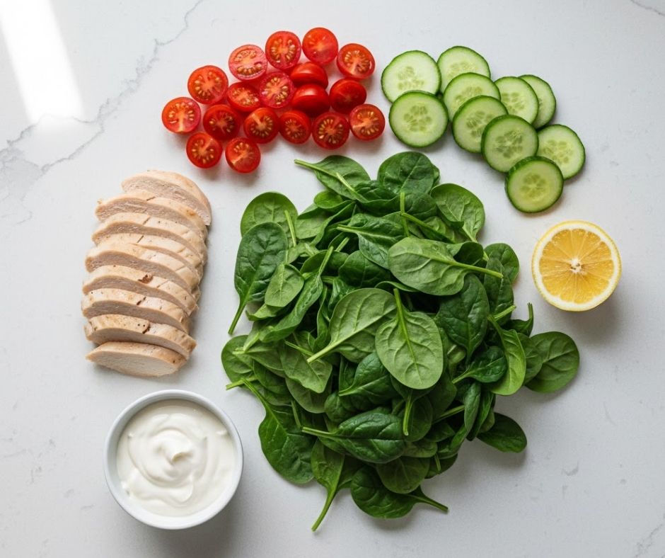 - High Fiber & Micronutrients: Spinach, tomatoes, and cucumber are loaded with vitamins and fiber.