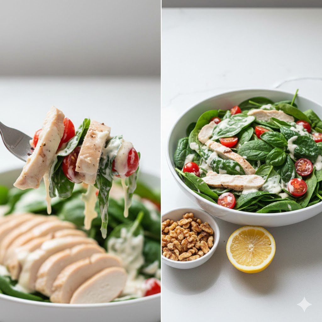 🥗 Ditch the Sad Lettuce: The Ultimate Creamy Spinach Salad with Chicken and Baby Tomatoes