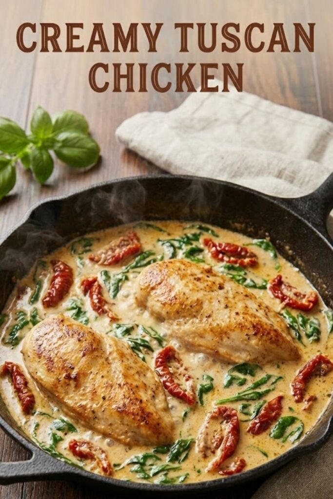 Let’s be honest: If a dinner recipe goes viral, it usually involves three things: a skillet, some cream, and the word “Tuscan.” But this isn’t just a trend; this creamy Tuscan chicken recipe is a legitimate weeknight superstar. We’re talking about perfectly seared, tender chicken breasts (or thighs, IMO, for maximum moisture!) swimming in a ridiculously rich, velvety garlic-parmesan cream sauce, studded with savory sun-dried tomatoes and earthy spinach. It’s elegant, comforting, and cooks entirely in one pan in under 30 minutes. Ready to unleash your inner Italian chef and conquer the dinner table?