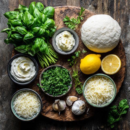 It’s a savory dressing or sauce typically made with mayonnaise, sour cream, and a blend of fresh green herbs (parsley, chives, basil), lemon juice, and sometimes anchovies. Our version is simplified for pizza!