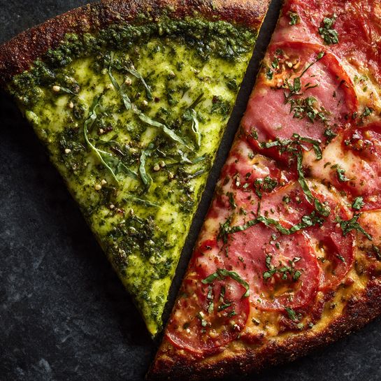 Pizza is still pizza, but this one is packed with fresh herbs and vitamins! Estimates are for one standard slice (1/8th of a 12-inch pizza).
