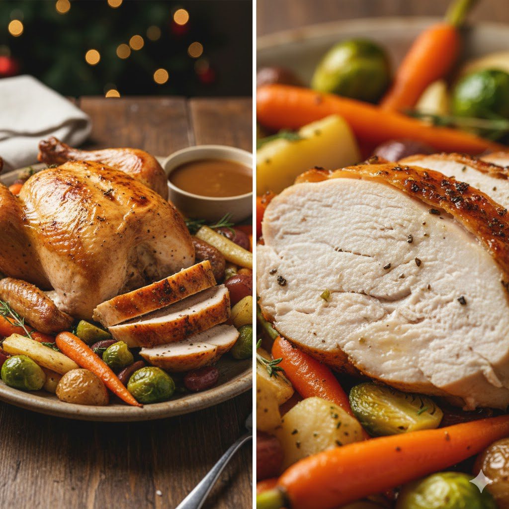 Go ahead, enjoy that tender, juicy slice. Did you realize roasting a whole bird could be this easy and fast? I bet you’ll be making chicken stock with the carcass immediately. Now, are you serving this with mashed potatoes or rice?