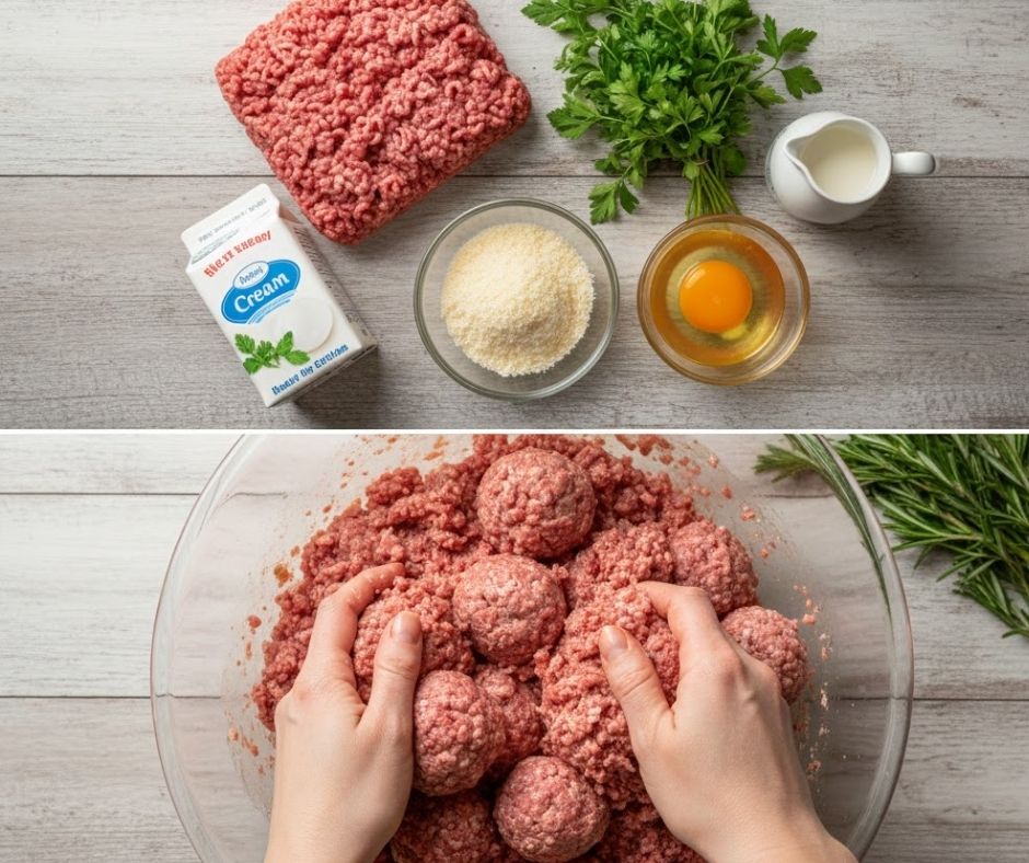 In your large mixing bowl, gently combine the ground beef, ground pork, Parmesan cheese, egg, heavy cream, minced garlic, onion (or powders), and all the dried herbs and seasonings. Do not overmix! Overmixing develops the proteins and makes the meatballs tough. Mix everything until just combined.