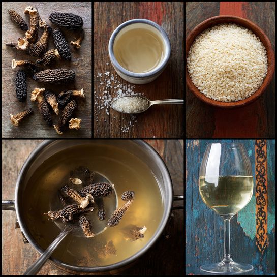 8. Rest and Serve: Cover the risotto and let it rest for 2 minutes. Stir once more, adjust the seasoning, ladle into warm bowls, and garnish with the reserved morels and a final grate of Parmesan.