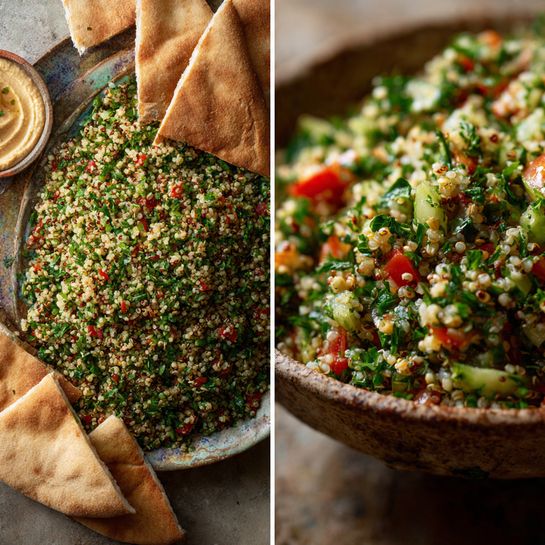 Q: What is the perfect ratio of herbs to quinoa? A: Tabbouleh should feel like an herb salad with grain, not a grain salad with herbs. We use 2 cups of parsley to 1 cup of quinoa—this ratio is key for authentic, fresh flavor.