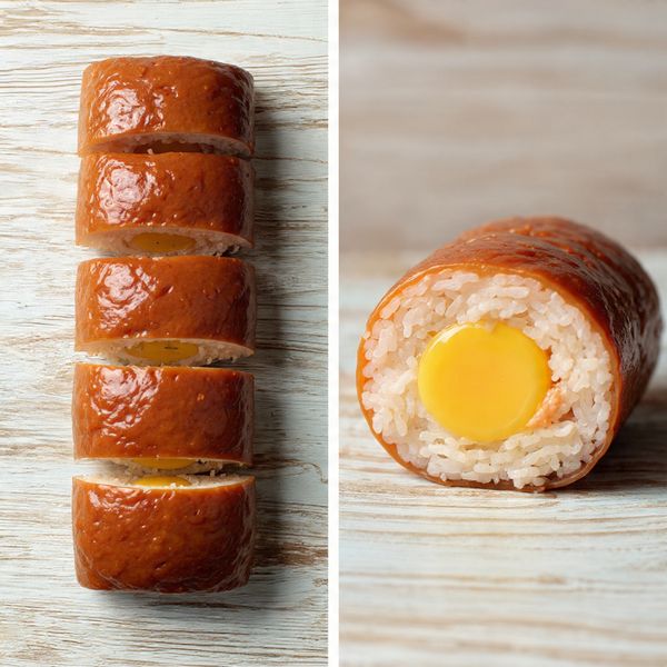 For extra richness and breakfast vibes, whisk an egg with a dash of soy sauce. Cook it in the Spam skillet after you remove the Spam, creating a thin, rectangular omelet. Slice the egg to the size of the musubi block and lay it between the rice and the Spam.