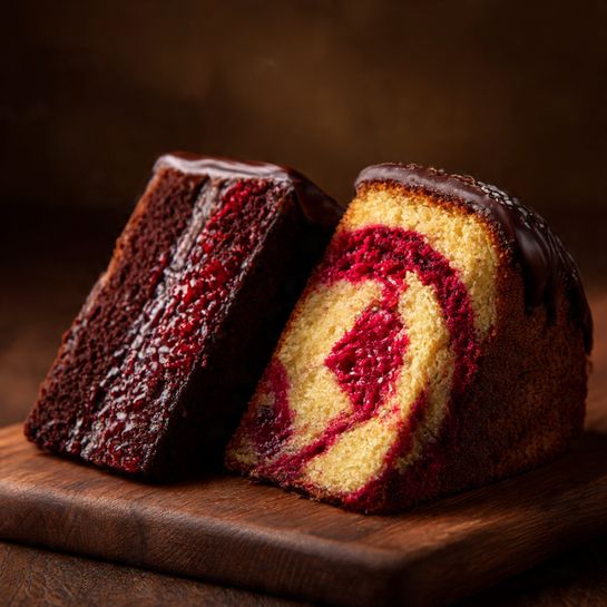 Swirl $\frac{1}{2}$ cup of seedless raspberry jam into the cake batter just before baking. Top the finished cake with a simple raspberry glaze (powdered sugar and raspberry juice) instead of chocolate ganache.